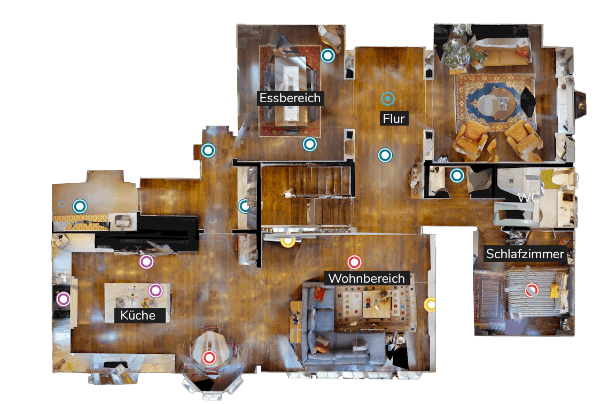 Über den Floorplan haben Sie die Möglichkeit sowohl das gesamte Objekt als auch jede einzelne Etage aus der Vogelperspektive zu betrachten. Nutzen Sie diese Ansicht, um einen Gesamteindruck zu erhalten, Informationspunkte zu entdecken oder an einer Stelle Ihrer Wahl in den Begehungsmodus zu wechseln.